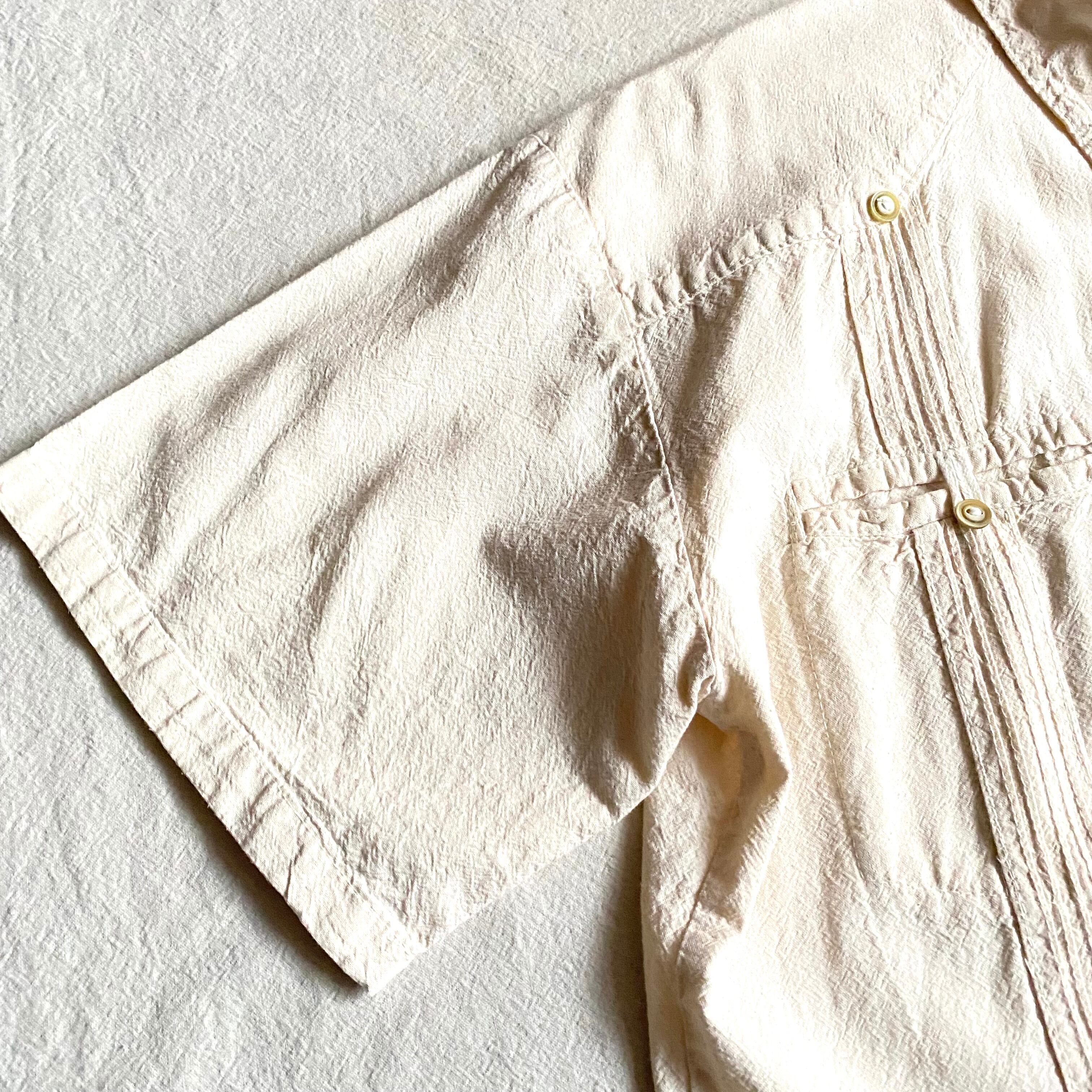 生成りカラーのキューバシャツ。