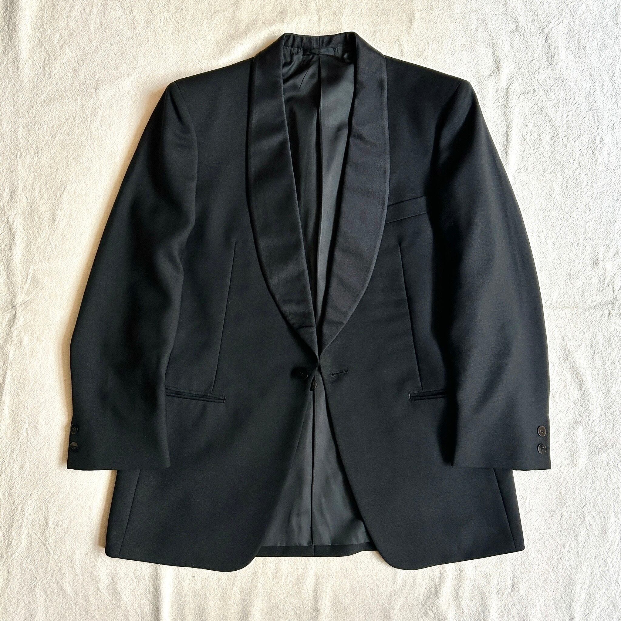 ブラックのサテン生地ショールカラーが上品な感じ。