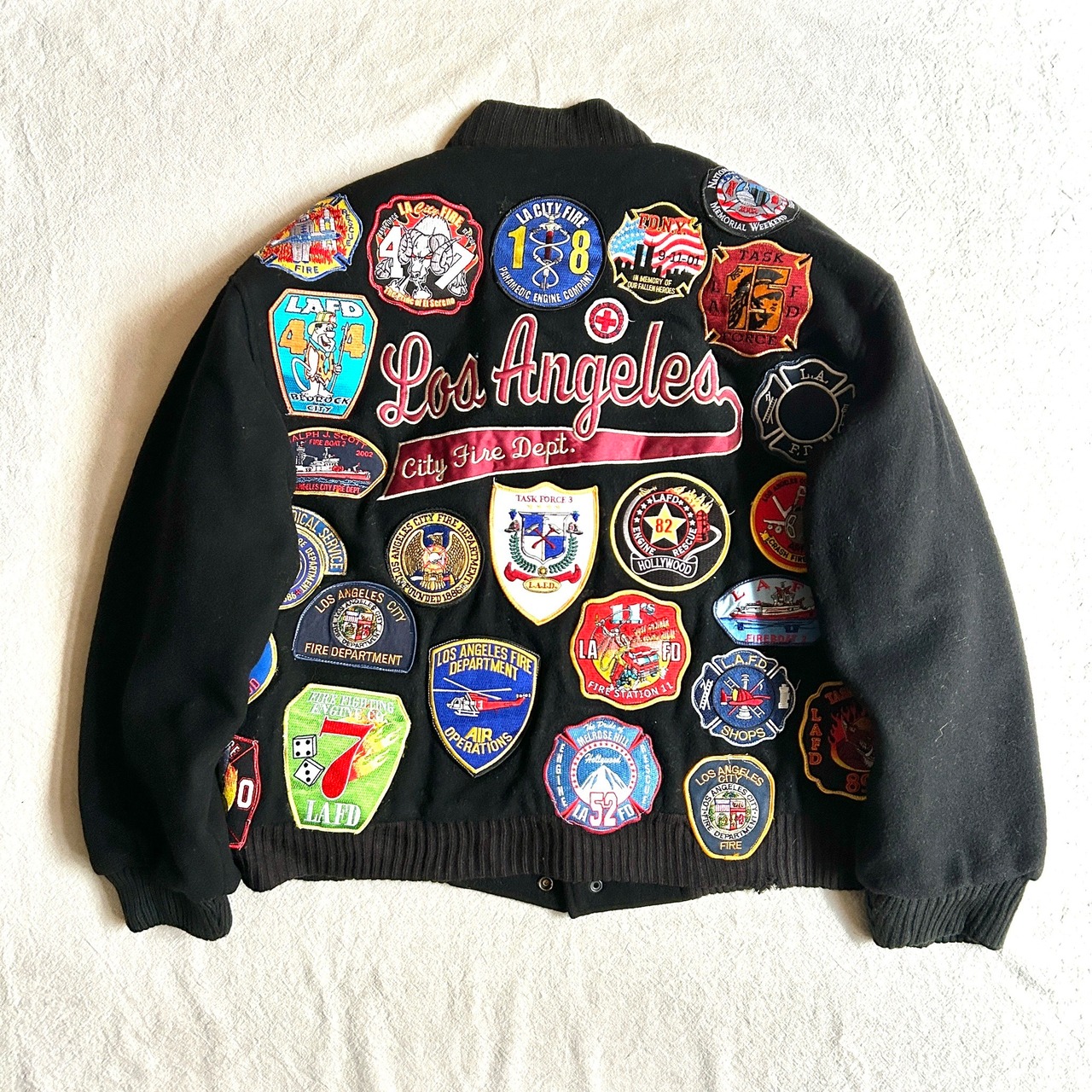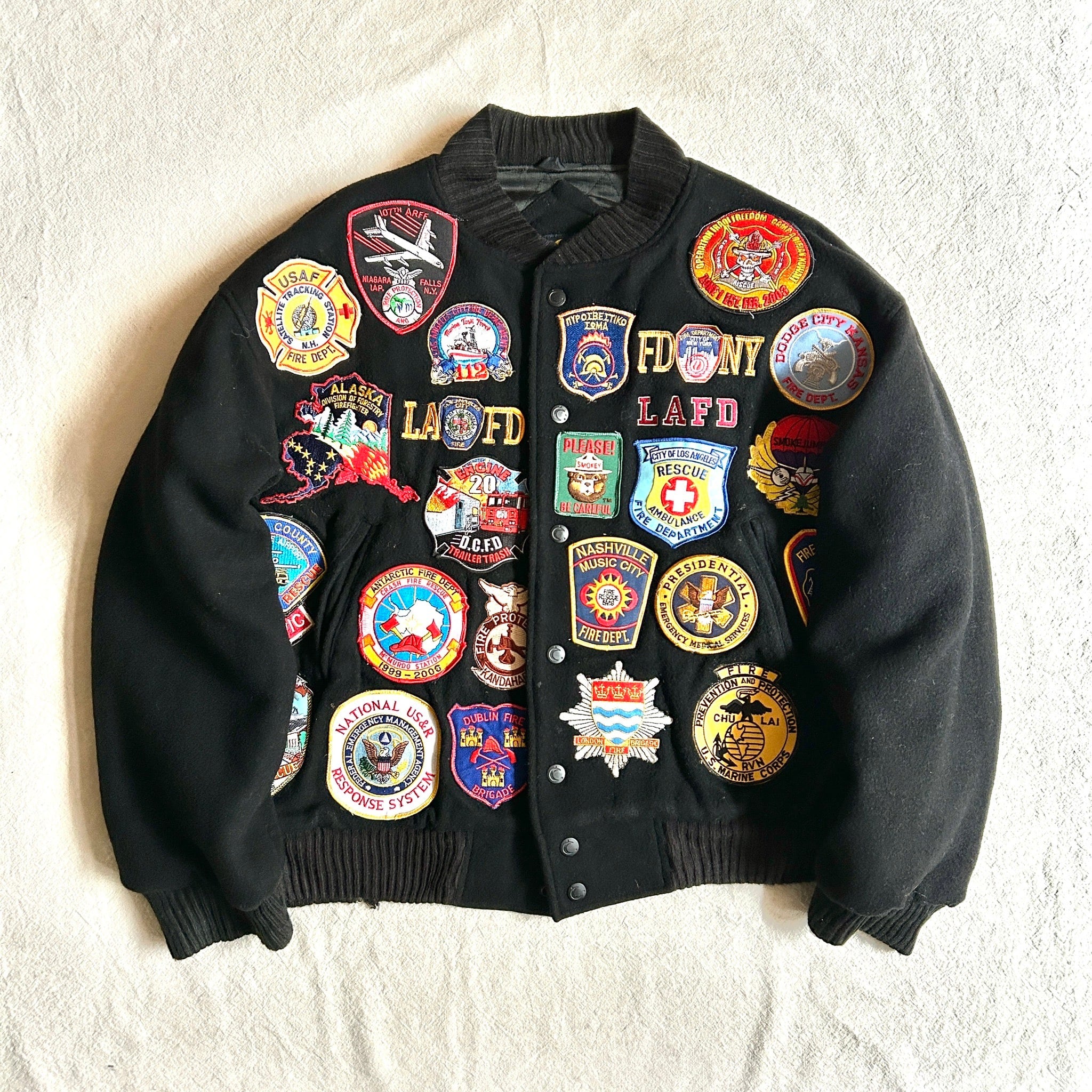 ロサンゼルス消防局を中心に消防、救急ワッペンがフロントにもバックにもバッチバチ。
