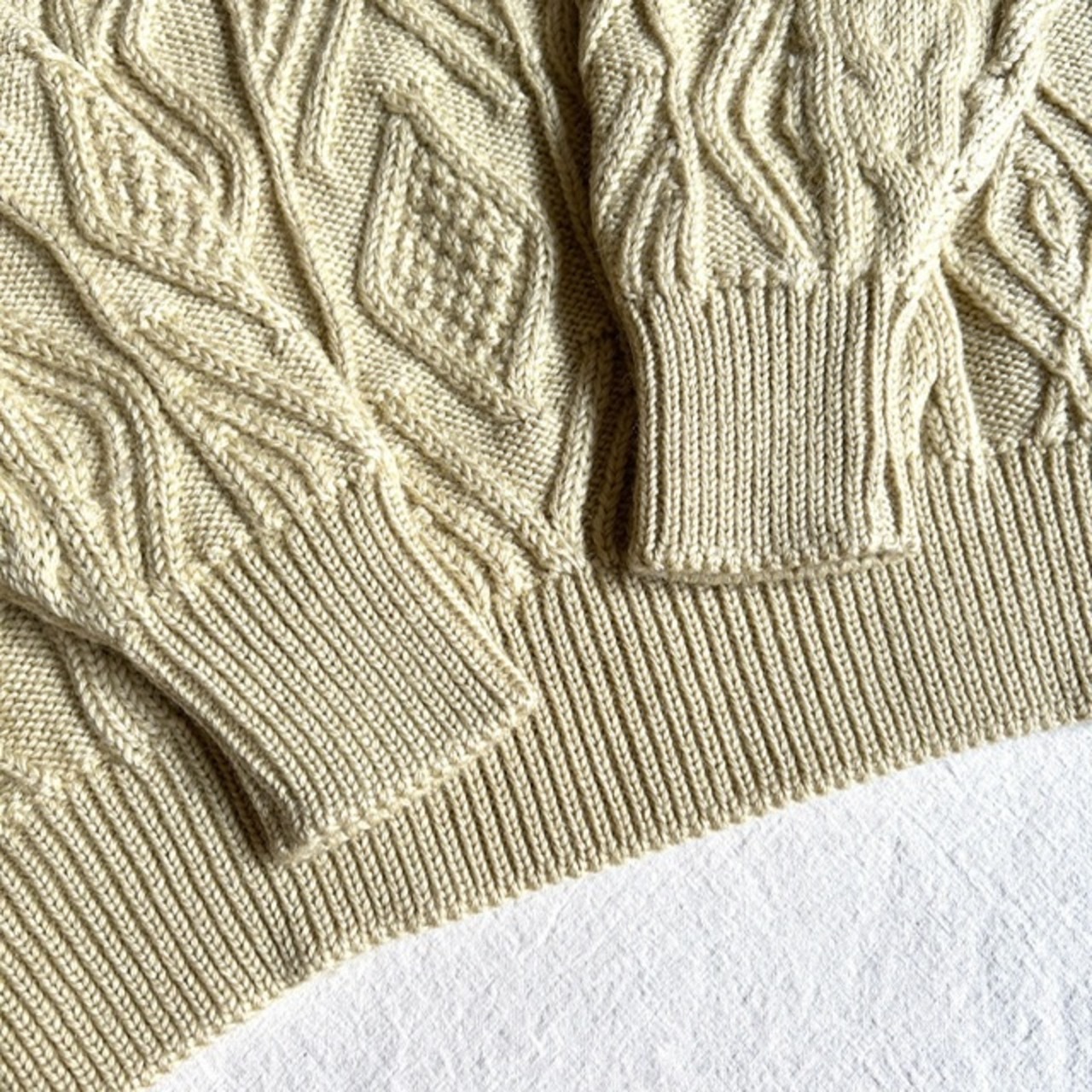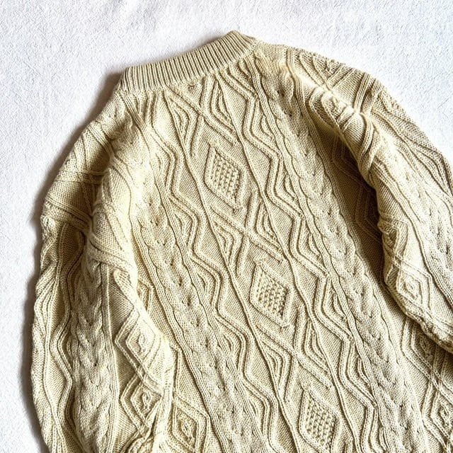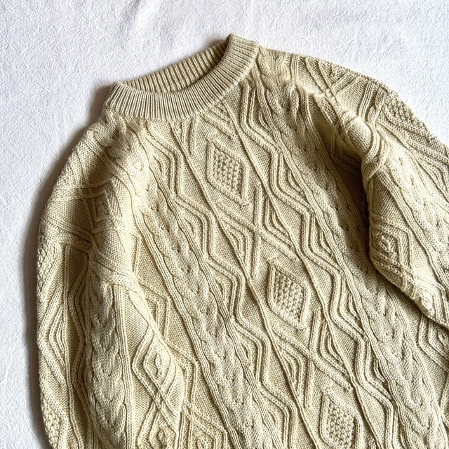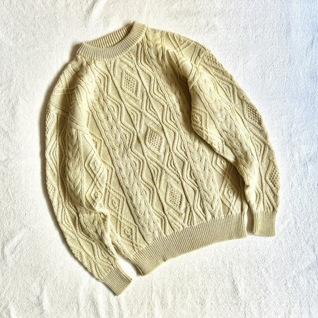 生成りのケーブルニット。