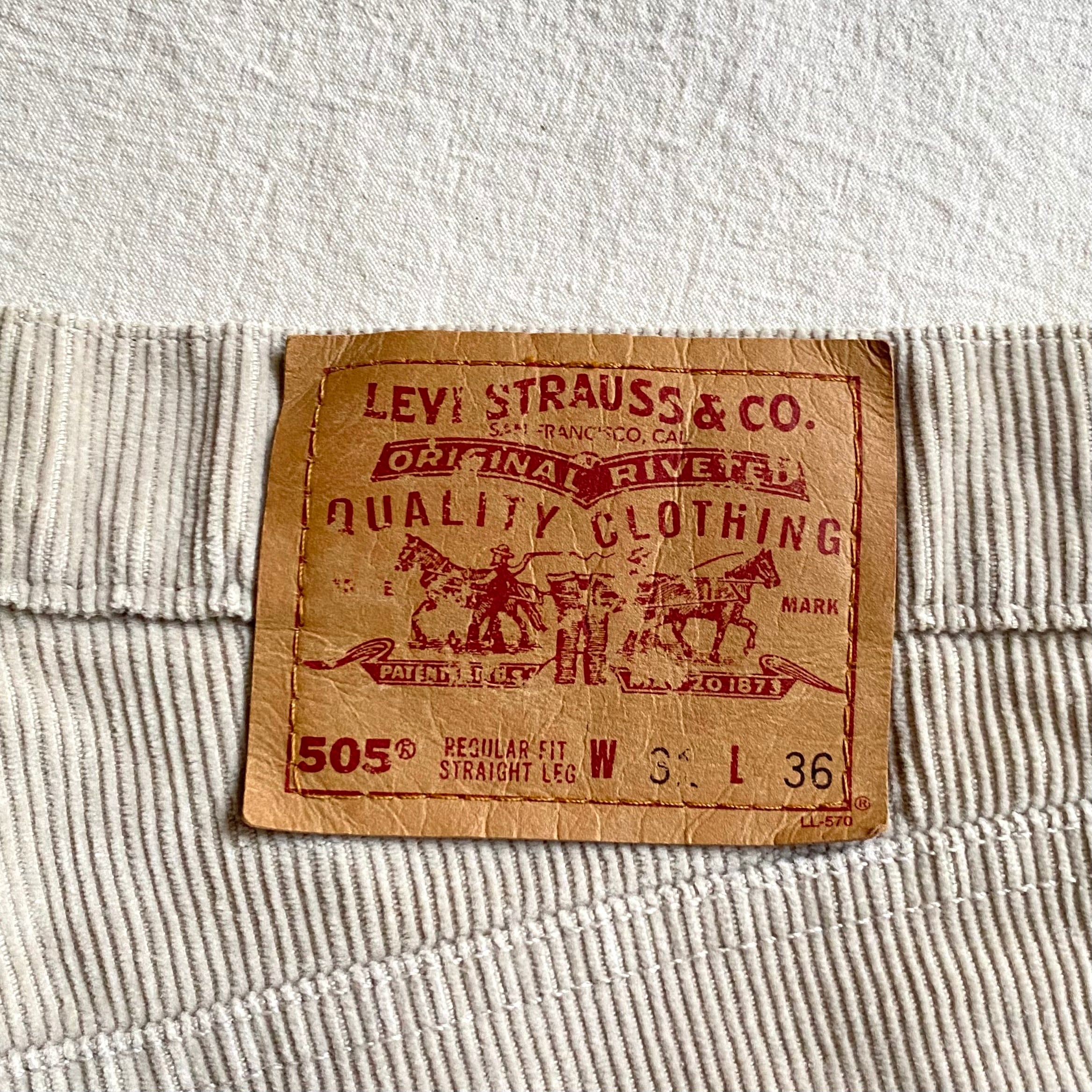 アイボリーカラーの505コーデュロイパンツ。