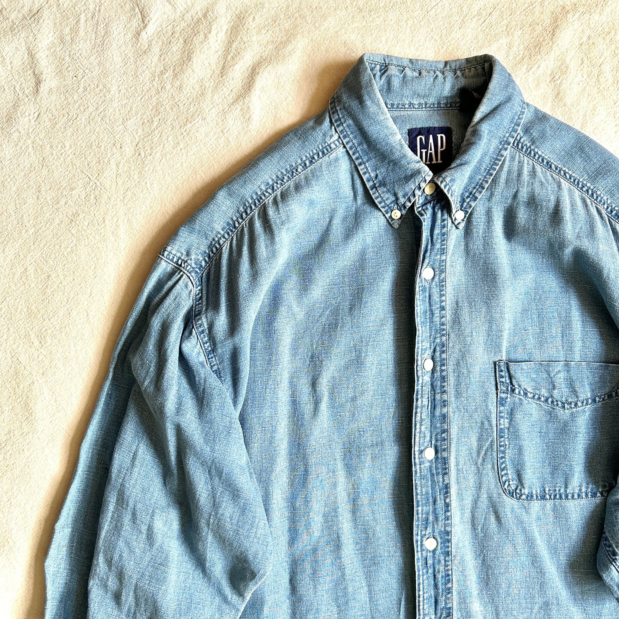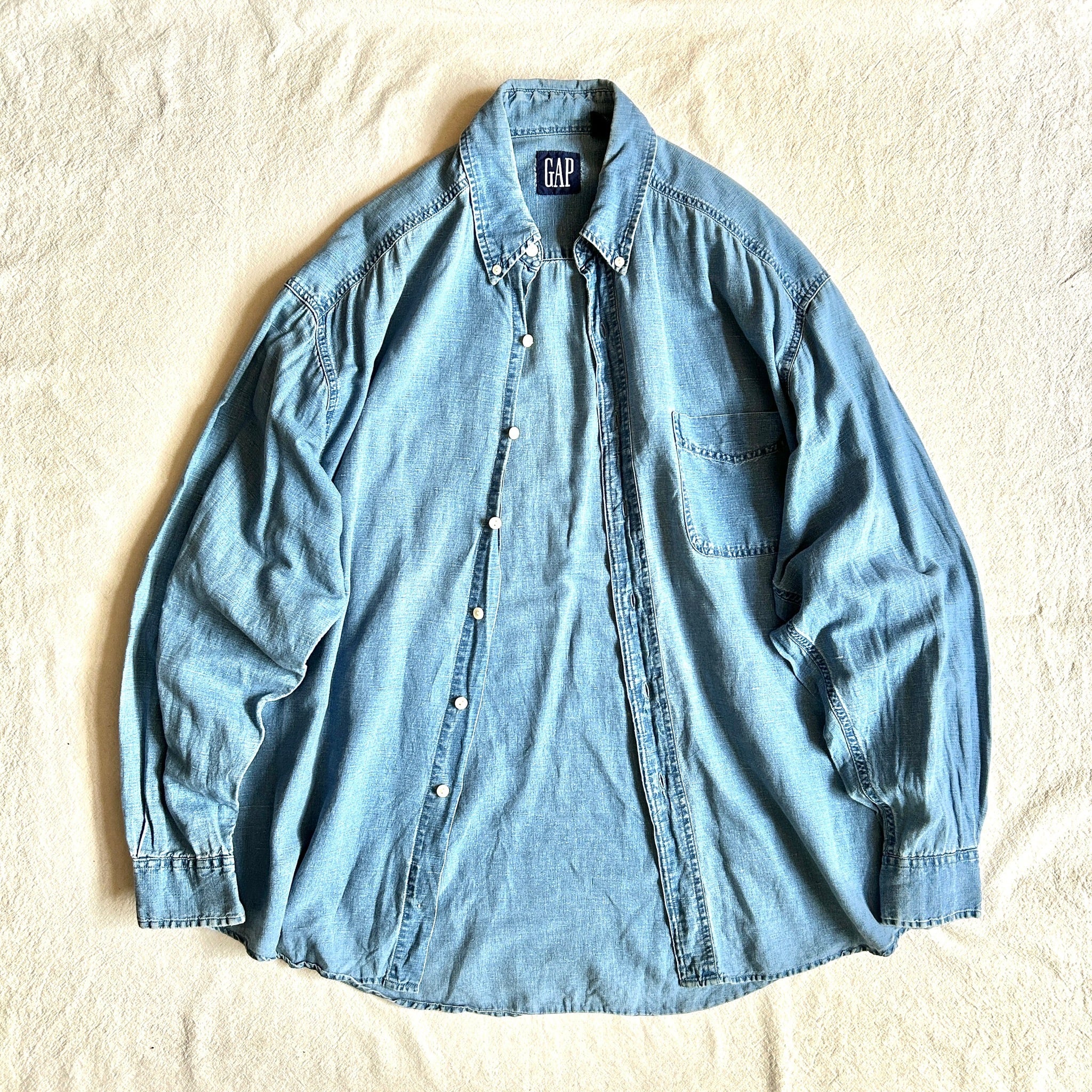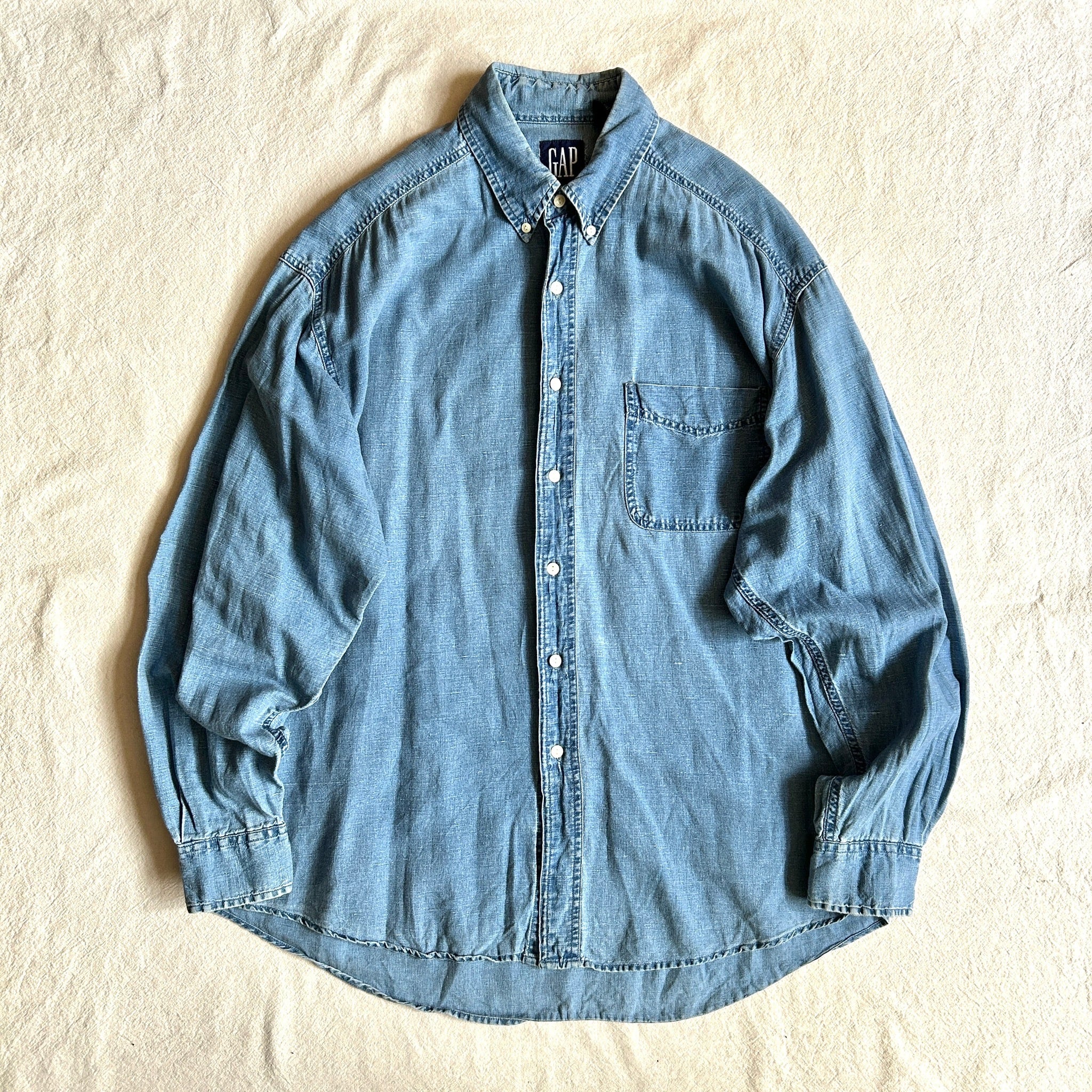 OLD GAP 1990's LINEN / COTTON INDIGOLINENCOTTON SHIRT インディゴリネンシャツ 古着 古着屋 メンズ古着 レディース古着 蒲田 大田区蒲田古着屋zira zira