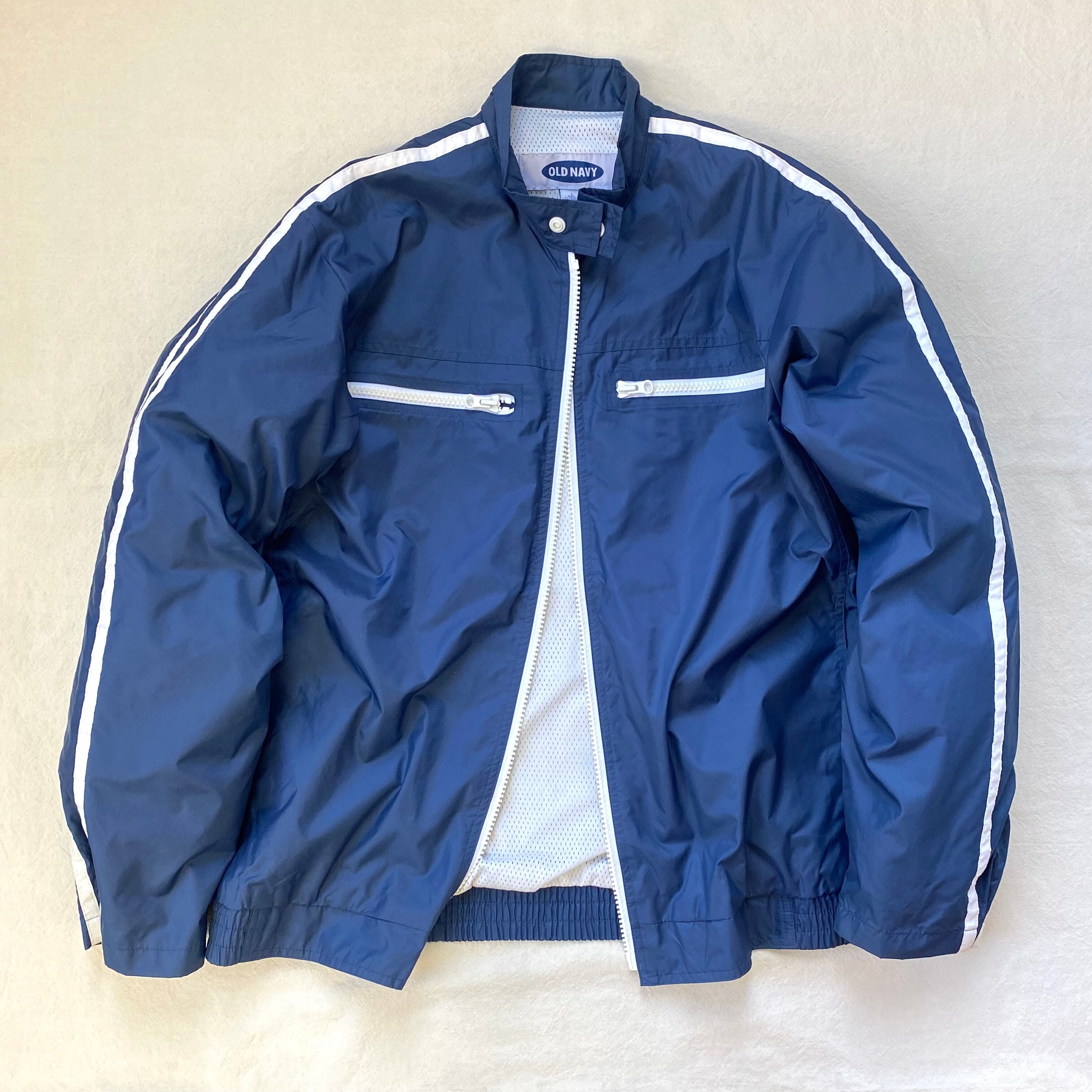 ネイビーに白ストライプの攻めたオールドネイビーナイロンジャケット。