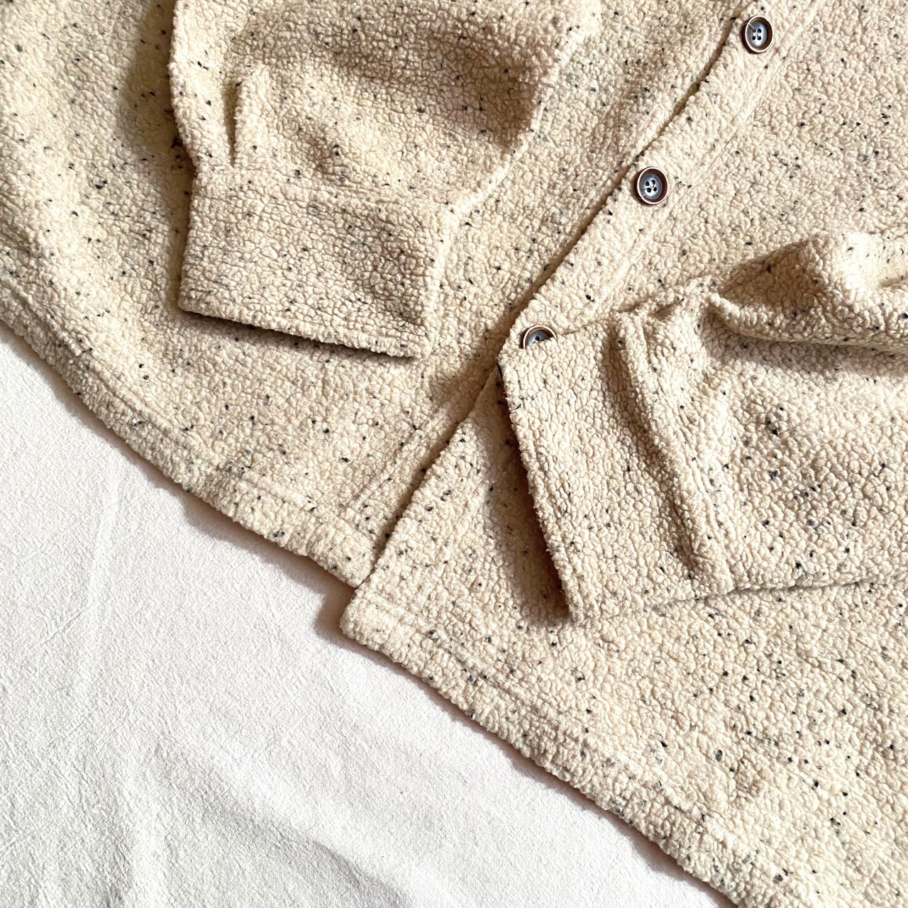ネップみたいなごま塩カラーのフリースシャツ。